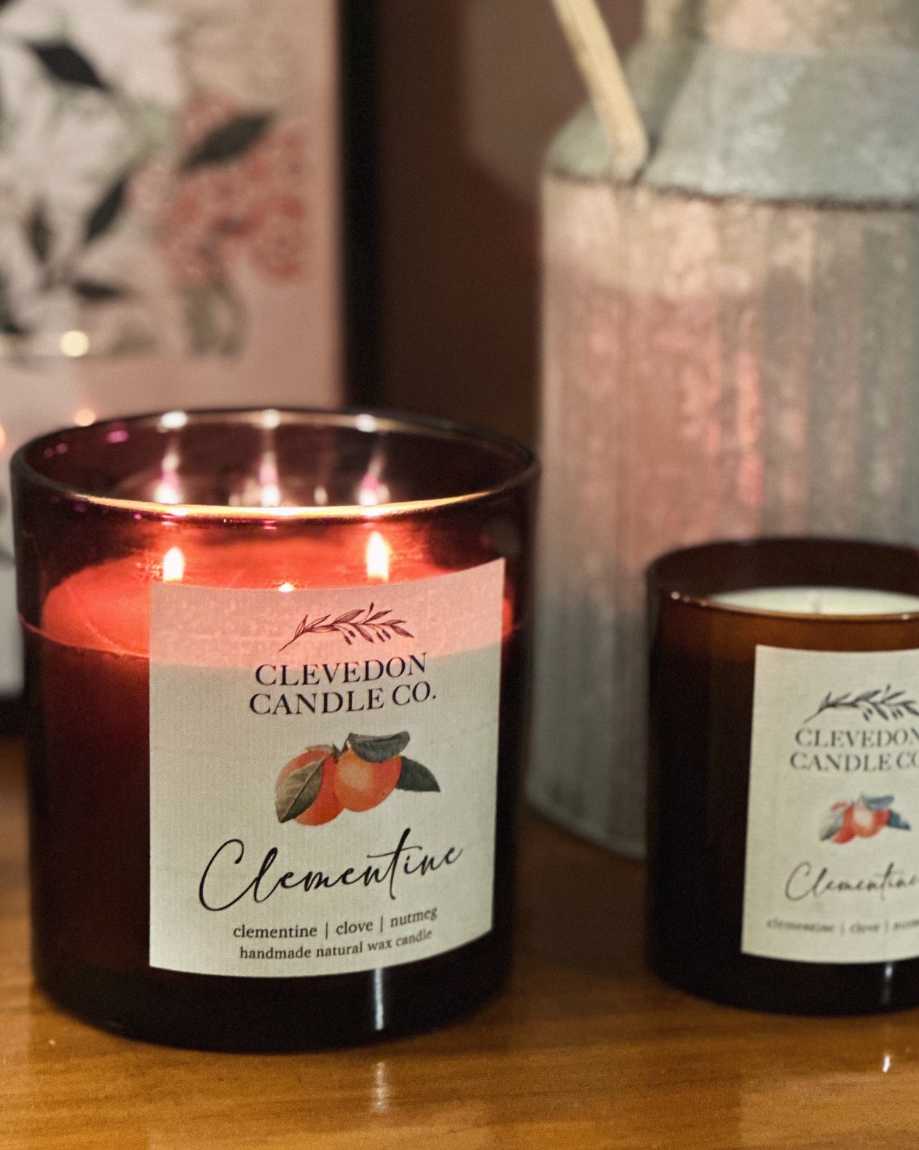 Introducing our most impressive creation yet—the Clementine Triple Wick Candle, a luxurious upgrade that brings triple the indulgence to your home. Crafted with three wicks and weighing nearly 700g (3 x the size of our standard candles), this substantial candle features our signature festive fragrance at its finest, delivering extended burn time and captivating scent throw.